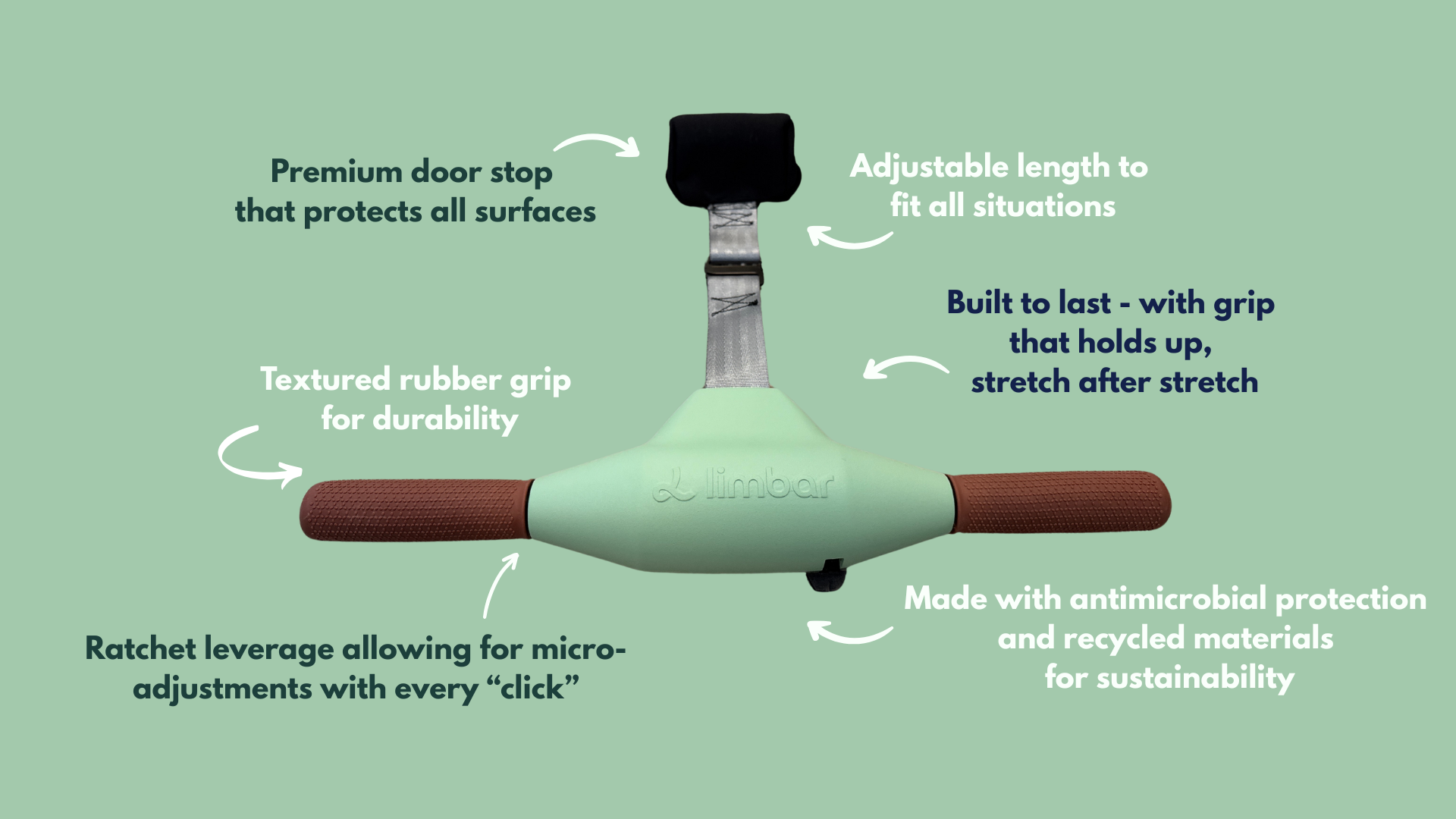 With every position you put yourself in, a new area of the body can be stretched. And small adjustments provide you more as well, such as flip your hands upside down or turn limbar into 'short mode' for unique stretches. And for anything the limbar system can't do, you can utilize the high quality detachable yoga strap by itself.